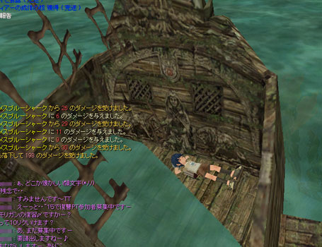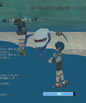 どうやらこのサメアクティブらしく、誘われるままに見に来たは良いのですが、怖くなってウロウロと逃げ回ってると上の彼が倒したらしく目の前にぐったりとしたサメが。